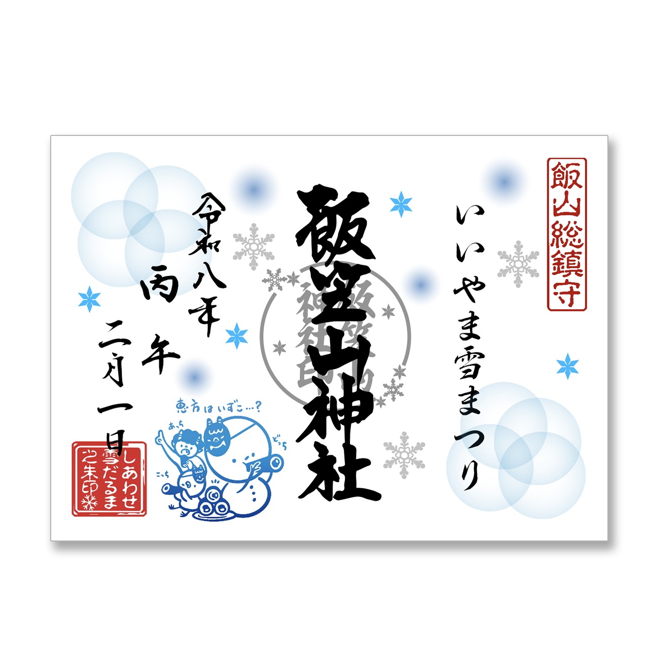 幸福を呼び込む「しあわせ雪だるま」をあしらった月替わりの御朱印です。